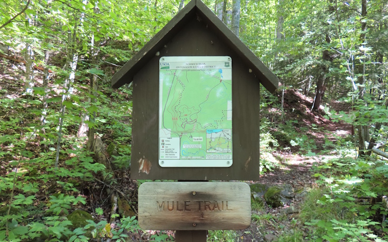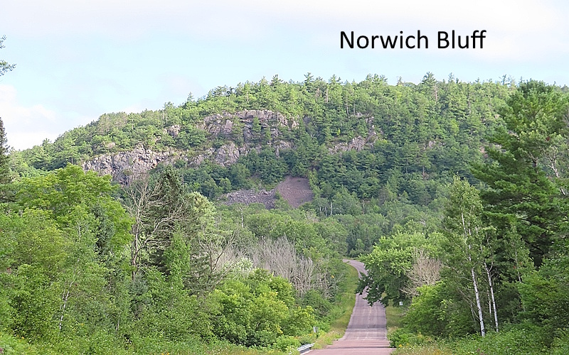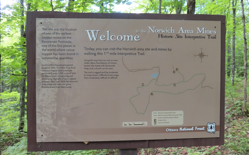 The Mule Trail near Ontonagon is one of a kind. Most of the trails I feature have similar characteristics. Each one has a unique feature that makes it worth hiking in the first place, not just another stroll in the woods. These trails are usually short, under two miles, and each is generally within the capabilities of nearly everyone when it comes to difficulty. The Mule Trail is short and has unusual features but that is where the similarities end. It may be the shortest route to the top of the Norwich Bluff, but the "Mule" is not easy-going. In fact, it is one of the most challenging trails I've run across in years of hiking around Michigan. The top of the bluff is 500 feet up.