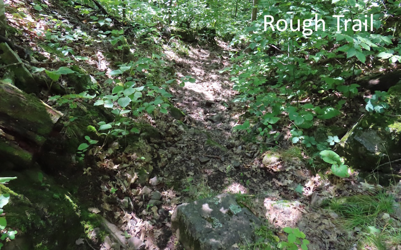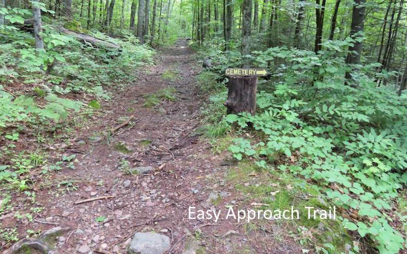 Difficult as the Mule Trail is, it isn't difficult to get to. All you have to do is make your way to the south side of the Norwich Bluff. The trailhead is off Norwich Road. From the parking area it is a short walk on a narrow path to a trail that runs along the base of the bluff. This trail is unimproved but is usually in good condition with the bluff rising along the side and gigantic boulders strewn around the base. After a short distance a small trail branches off to the south. A simple sign at the junction reads, “Cemetery”. It’s interesting to visit the cemetery and it’s not far. The burial ground is tiny, perhaps a dozen markers inside a fence. There is a plaque depicting the layout and names of the interred. The cemetery appears to be regularly tended.